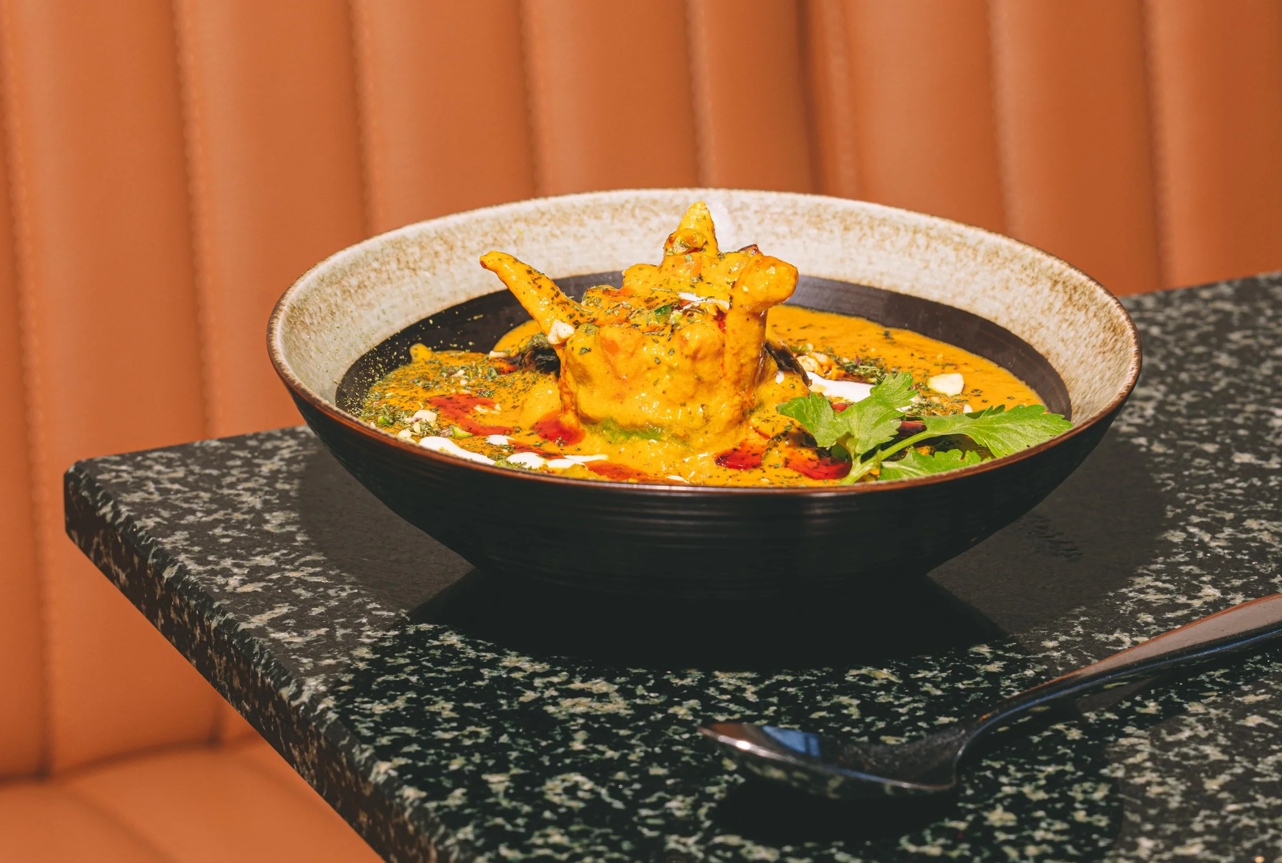 Tandoor-grillet kylling med bein serveres oppå en fyldig, smøraktig og spicy tomatsaus. Vår vri på en høyt elsket klassiker fra Indias hovedstad.